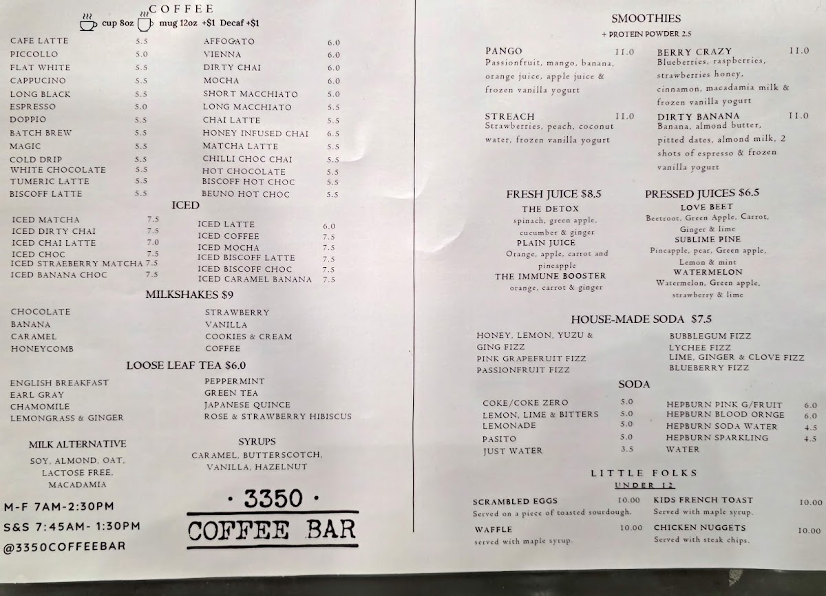 3350 Coffee Bar Menu